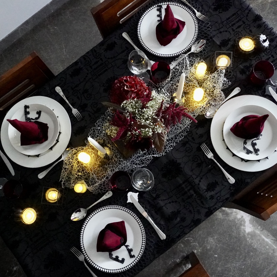 闇夜を演出したハロウィンのテーブルコーディネート