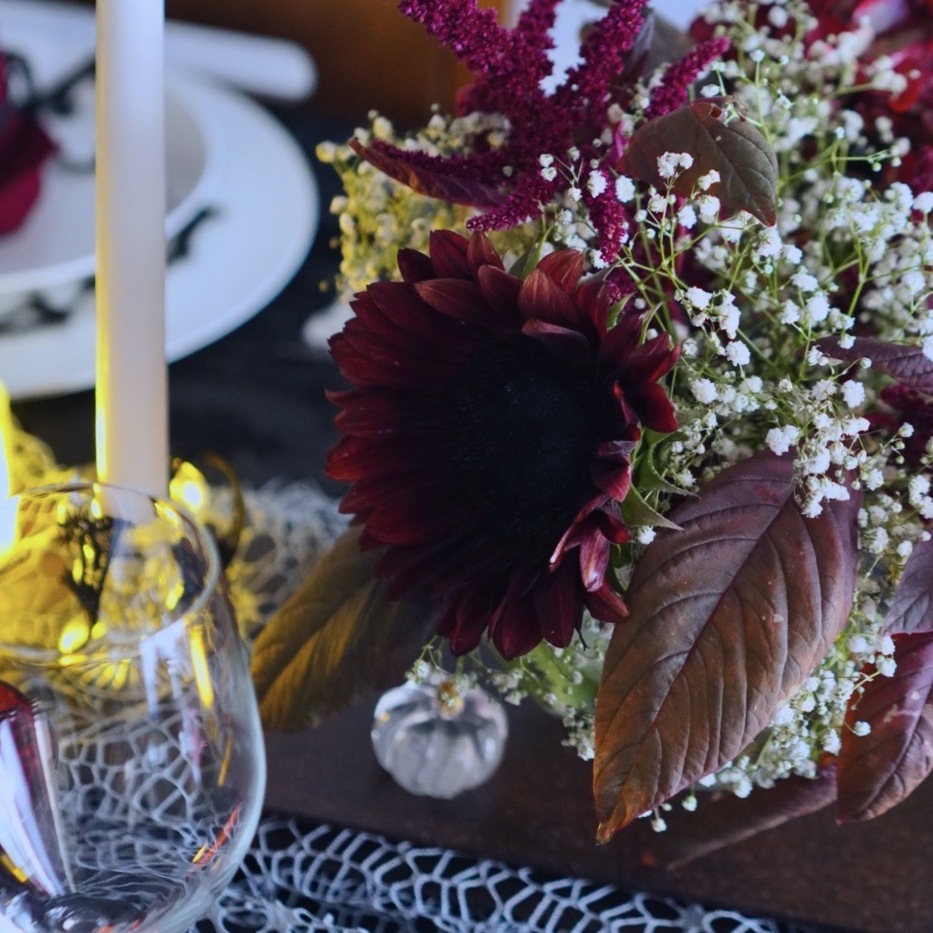 ハロウィンテーブルのフラワーコーディネート