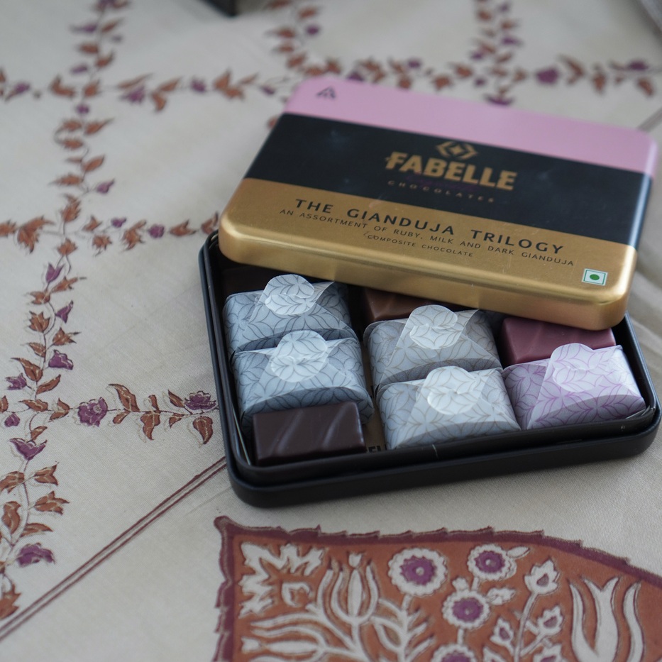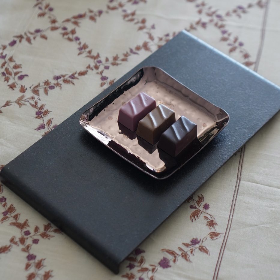 バレンタインといえばやっぱりチョコレート。インドのラグジュアリーホテルブランド、ITC Hotelsが手がけるFabelleのチョコレートを用意しました。ルビー、ミルク、ダークの三色は、それぞれ異なる表情を持ち、包み紙の愛らしさも印象的です。