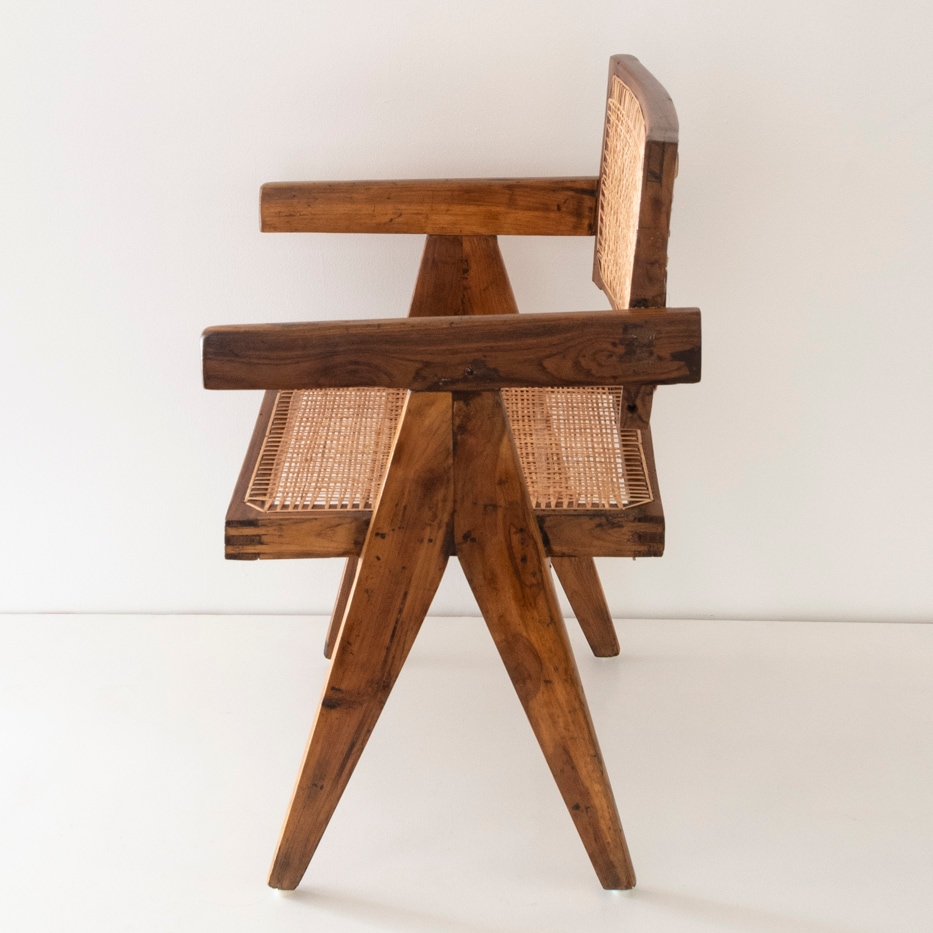 コルビジェのパートナーであり従兄弟のピエール・ジャンヌレがインドの都市計画チャンデガールのために、建築設計と共にデザインされたフローティングラウンジチェア。当時の雰囲気をなるべく損なわないように、現地で熟練の職人が1点1点リストアしています。