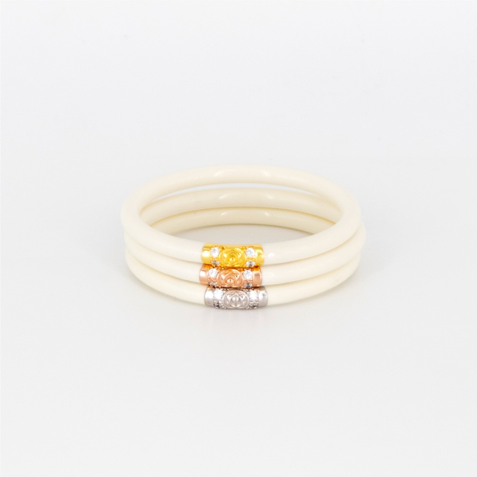 3キング(スリーキング)はAlways Bangle(オールウェイズバングル)の中でも色選びが楽しいバングルです。何か洋服のコーディネートで差し色が欲しい時ありませんか?洋服や靴の1色を引っ張ってきたいとき、メイクやネイルと合わせたいとき。ホワイトは夏の手元にはもちろん、黒、ネイビーなどが多くなりがちな冬のコーデの時も白いカフス的役割を担います。ブラックの3キングとあわせたモノトーンコーデもおすすめ。3連なので適度なボリュームでAWBの軽さや防水機能はそのまま。レッド、ホワイト、ブラック、3キングシリーズを気分に合わせてチョイスしてください。