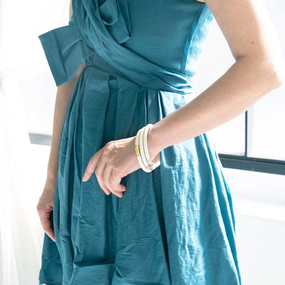 Always Bangle(オールウェイズバングル)は完全防水です。プールやバカンス先の海ではもちろん、ヨガ、スポーツ、キッチン、バスルーム、子育て中でもつけたり外したりするわずらわしさや、外しているうちにバングルが行方不明なんていうこともありません。そして全天候型、TPOとファッションに合わせてどんな時でも安心してつけられます。