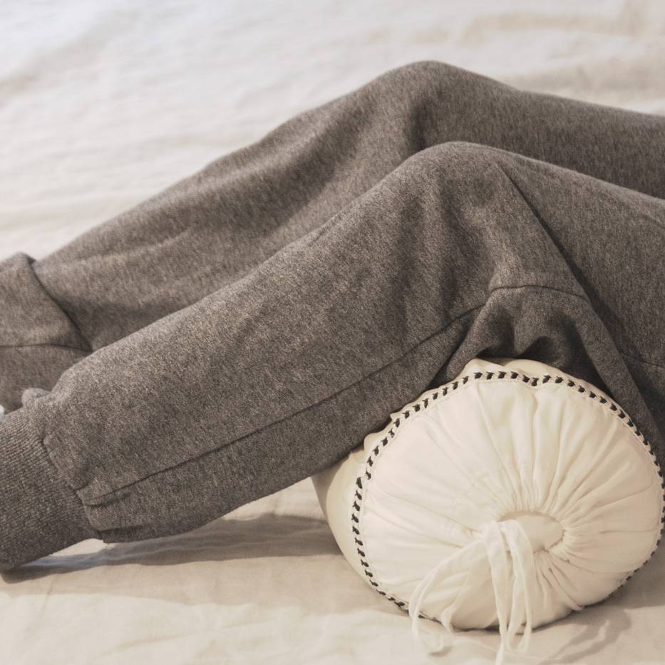 2つ重ねの枕に、さらにあると便利なのは円柱型のネックロールピロー。実は枕の役割は頭を載せるためというよりは、首の隙間を埋めるのが主な目的なのです。2つの薄さの異なる枕とネックロールピローがあれば完璧な状態で眠ることができます。